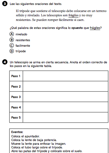 Un telescopio se arma en cierta secuencia. Anota el orden correcto de los pasos en la siguiente tabla.
