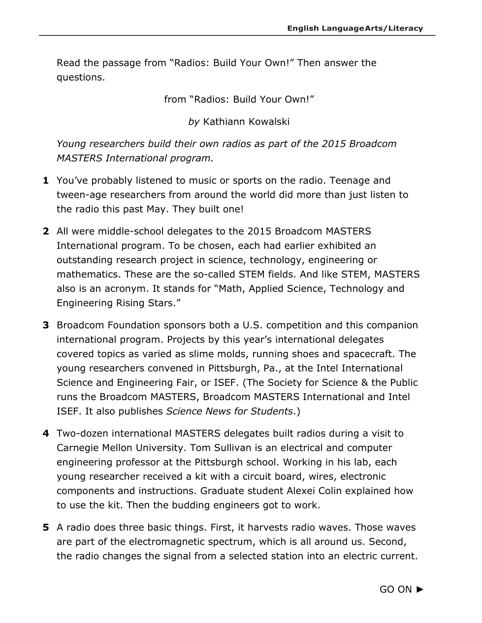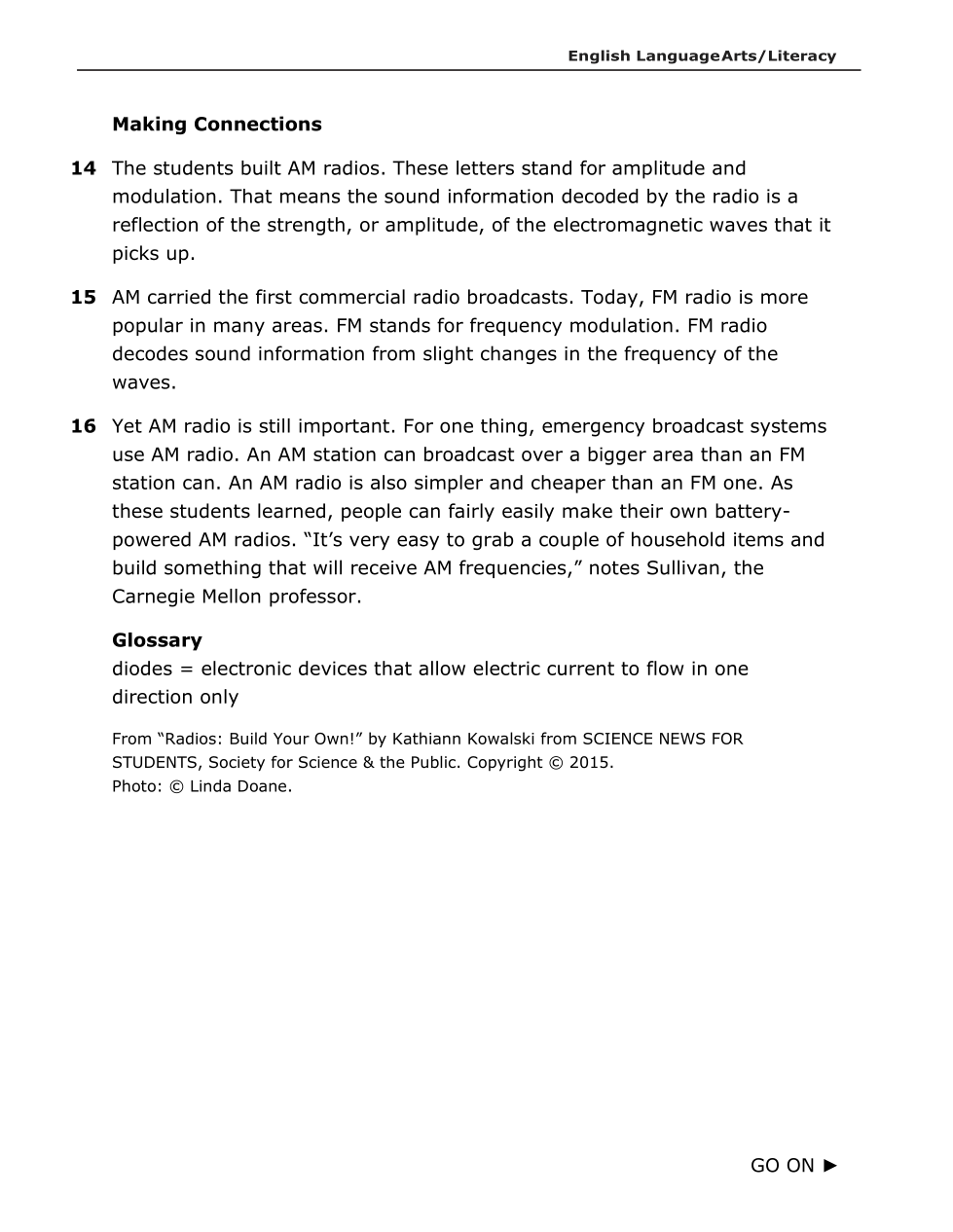 __________“Tom Sullivan is an electrical and computer engineering professor at the Pittsburgh school.” (paragraph 4)“As these students learned, people can fairly easily make their own batterypowered AM radios." (paragraph 16)