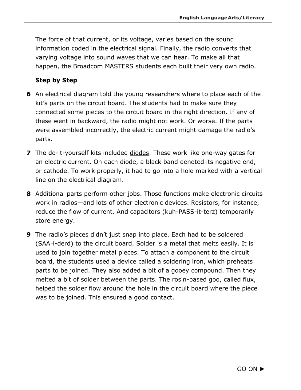 In the passage, students followed specific steps to build a radio. Rearrange the steps the students followed in the correct order