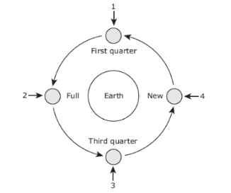 The diagram below shows four phases of the moon as it revolves around Earth.