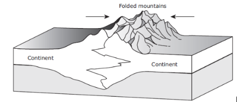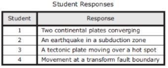 Four students were asked to identify the geologic process that caused this mountain range to form. Their responses are shown below.