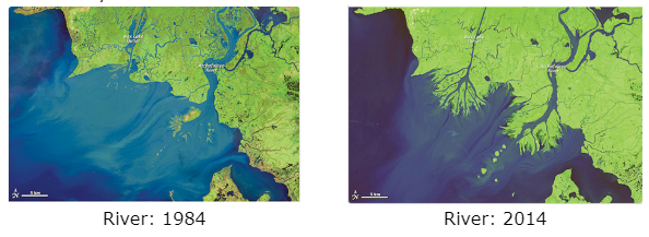 Which of the following statements best describes the cause for changes to the land over the course of 30 years?