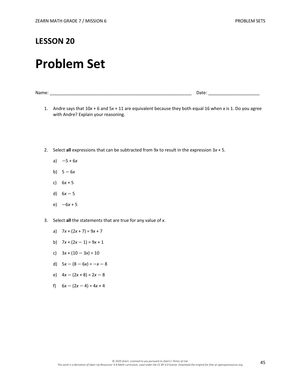 2. Select ALL expressions that can be subtracted from 9x to result in the expression