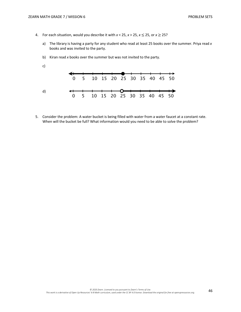 5. Consider the problem: A water bucket is being filled with water from a water faucet at a constant rate. When will the bucket be full? What information would you need to be able to solve the problem?