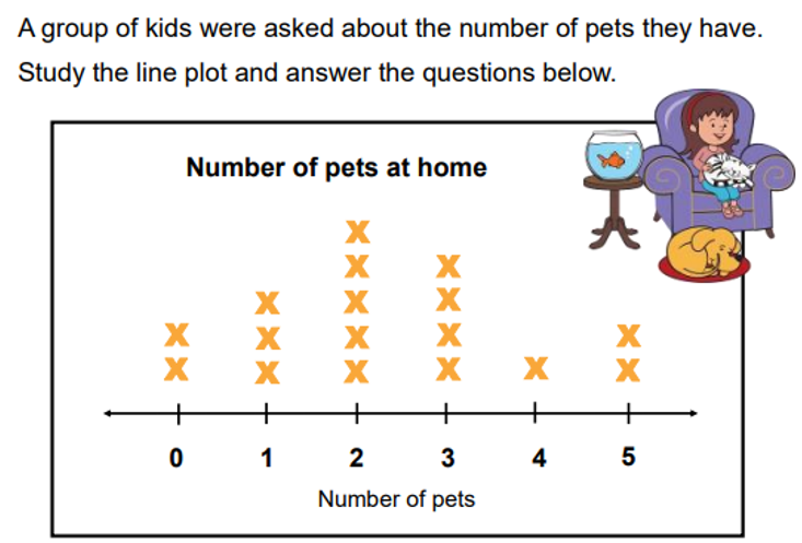 Look at the line plot below. How many kids have 4 pets? https://talkandcomment.com/p/6fa8979f59538ef479081175 (voice note)
