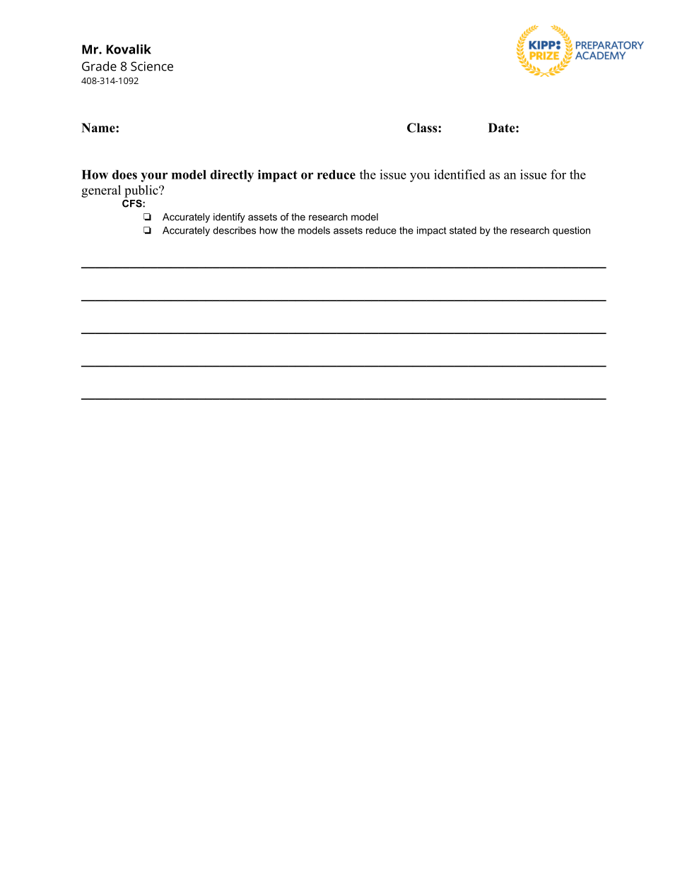 - Accurately describes how the models assets reduce the impact stated by the research question