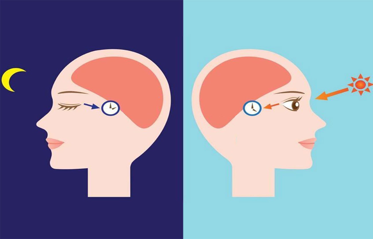 The production of the dopamine hormone is sensitive to light: at night, the dopamine levels increase, while in the day the dopamine levels decrease, making you fell awake.