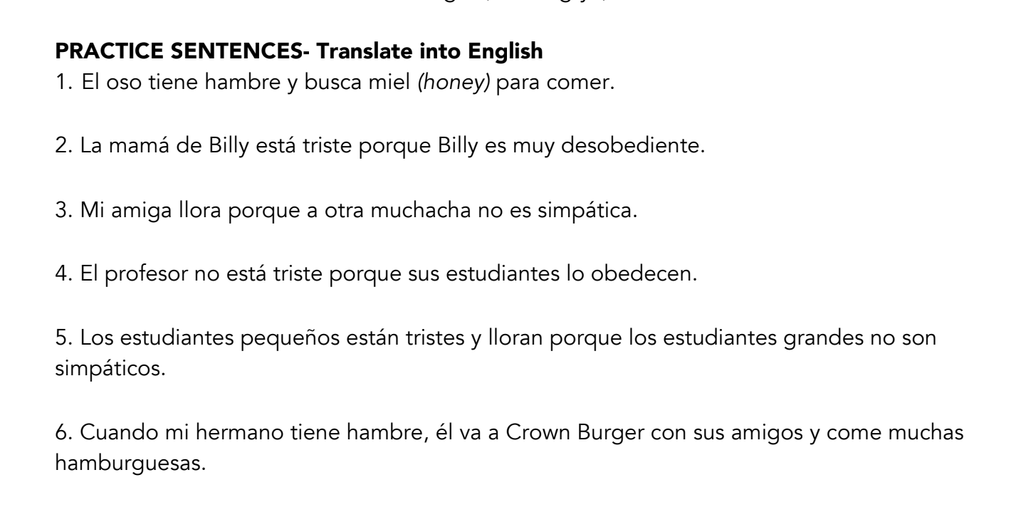 Actividad 1 unidad 10 ( translation & Make sentences)