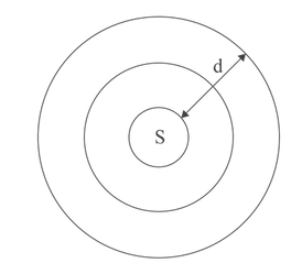 A candle lights a darkened room, emitting a wave of amplitude A. At a distance d, the intensity is I.