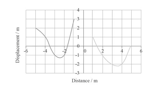 towards each other. All distances where there is no line shown on the graph have a zero displacement.