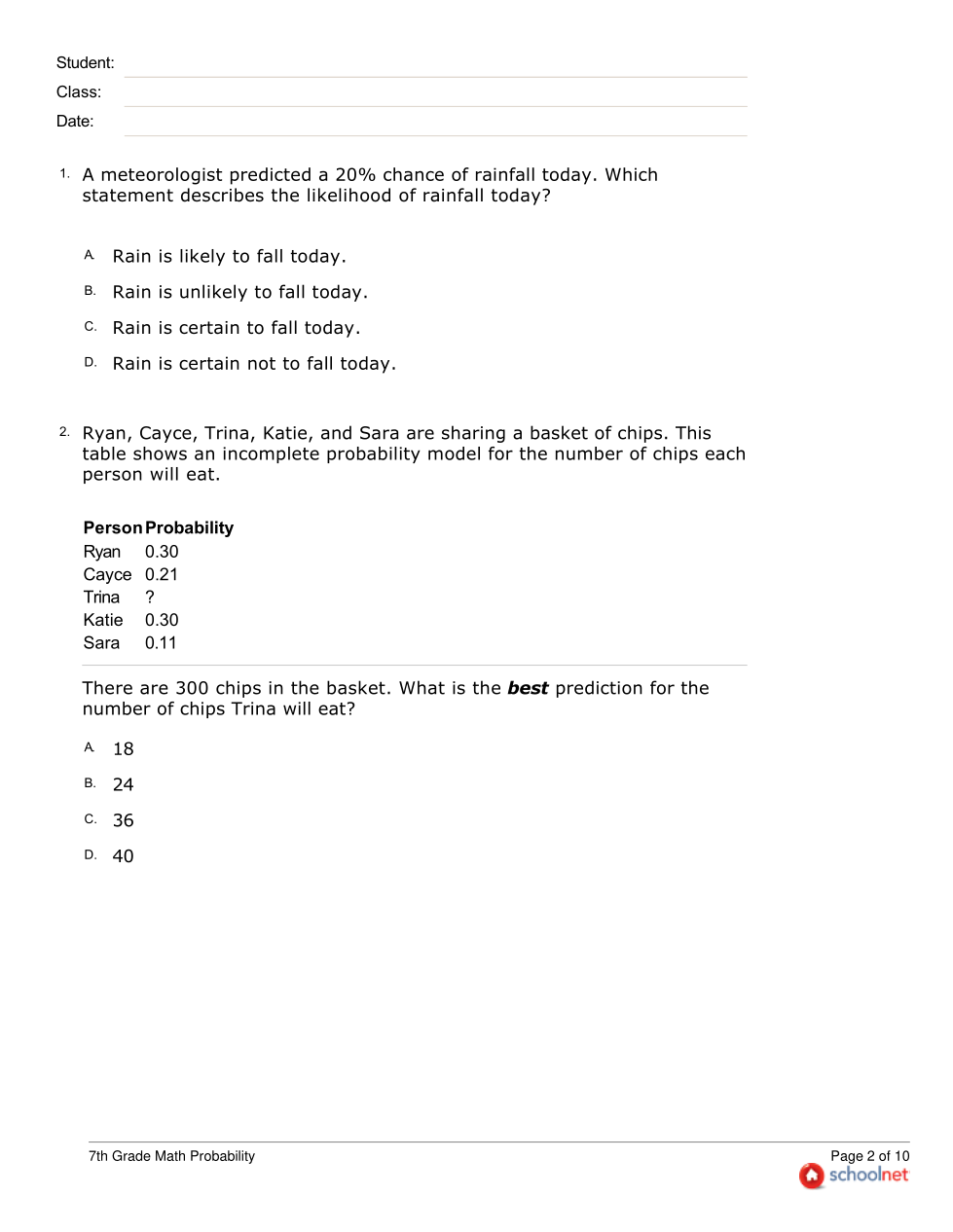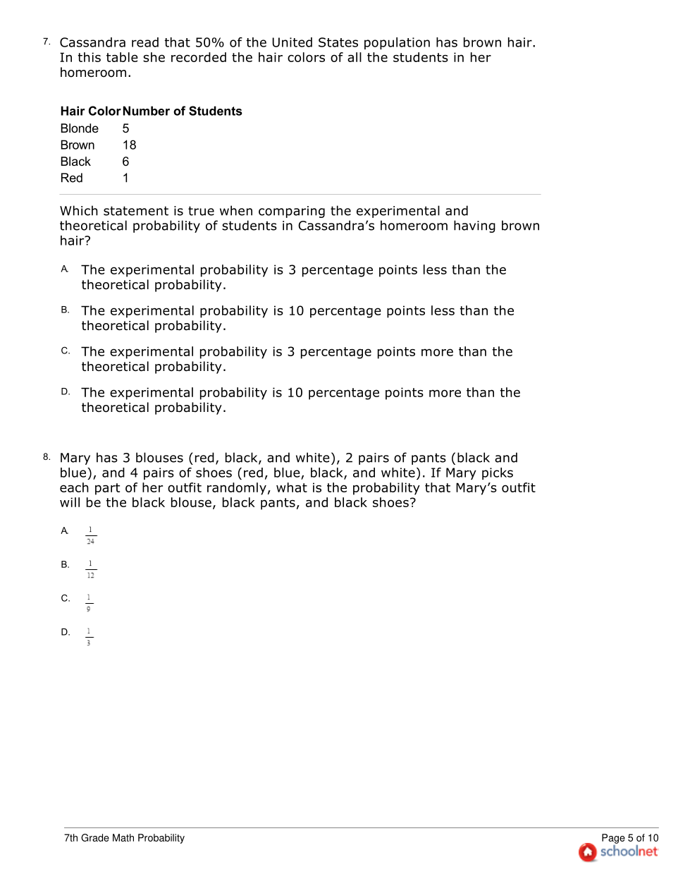 7th Grade Math Probability