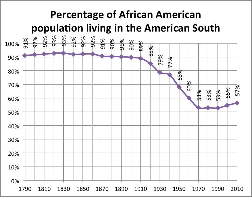 In Period 5, we learned that the Northern part of the U.S. was quite _______ and had much larger cities than in the South. Starting in 1916: _______ African Americans moved from the rural south to northern industrial cities. By 1970 over _______ of African Americans lived in the Northern areas whereas only _______ lived there in 1900.