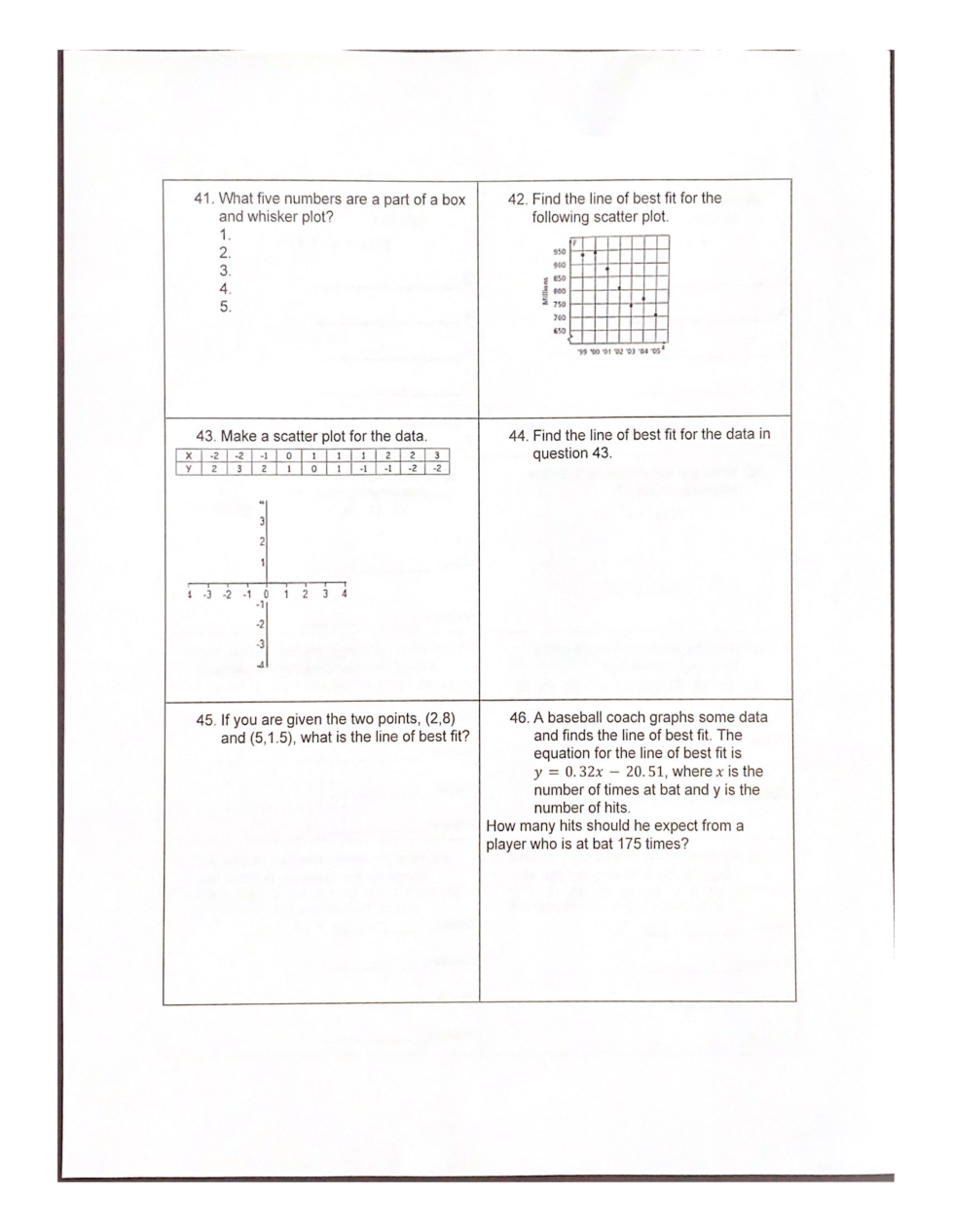 Find the line of best fit for the data in question 43.