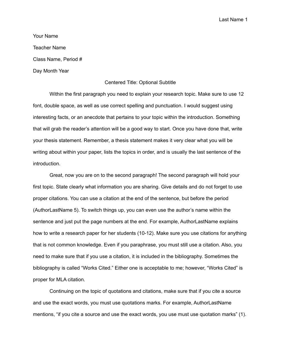What side of the paper does the author's name, instructor, class period, and date go on in MLA formating?