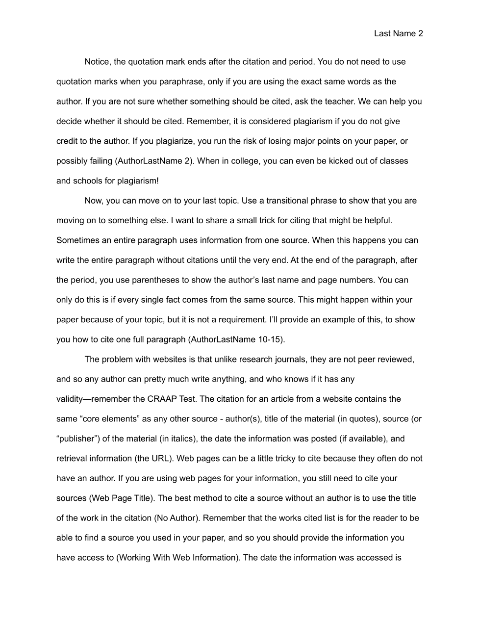 When Citing A Web Page or Article on a Web Page, If you have the author's name, then cite the author's name in the in-text citation by itself, since obviously you do not have a page number. If the information has no identified author, then use an abbreviated title of the web page corresponding to the title you will use on the Works Cited page to identify the web site?