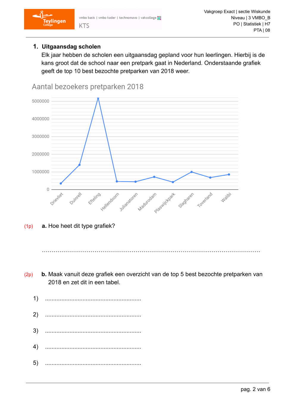 Maak vanuit de grafiek een overzicht van de top 5 best bezochte pretparken van 2018 en zet deze in de juiste volgorde.