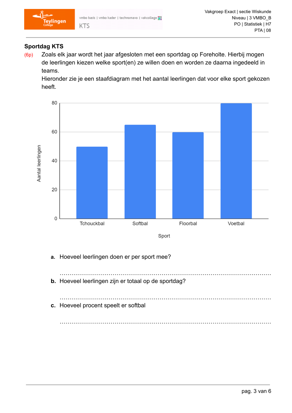 Hoeveel leerlingen zijn er in totaal op de sportdag?