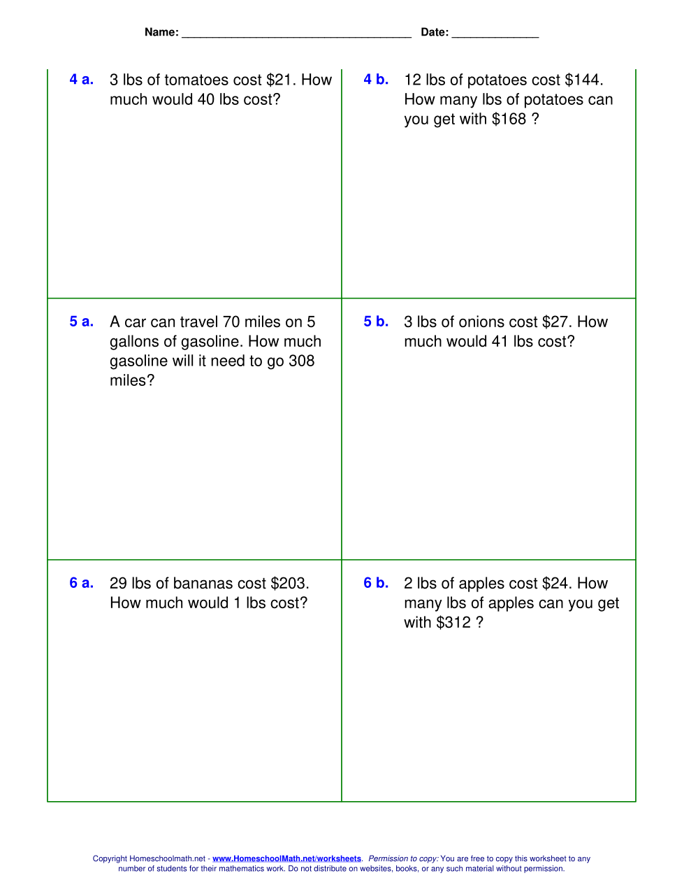 4a. 3 lbs of tomatoes cost $21. How much would 40 lbs cost?