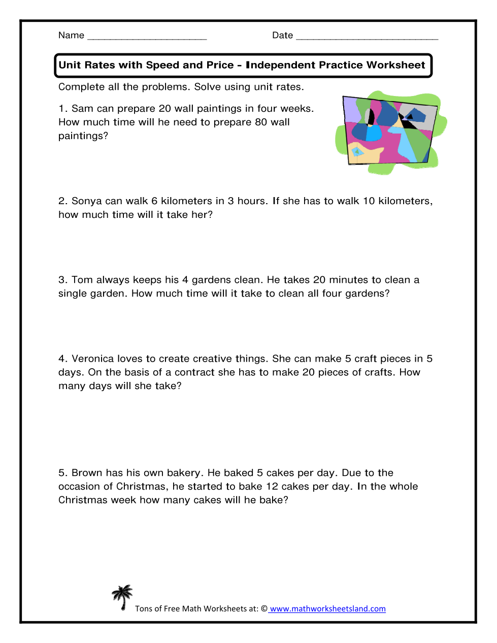 1. Sam can prepare 20 wall paintings in four weeks. How much time will he need to prepare 80 wall paintings?