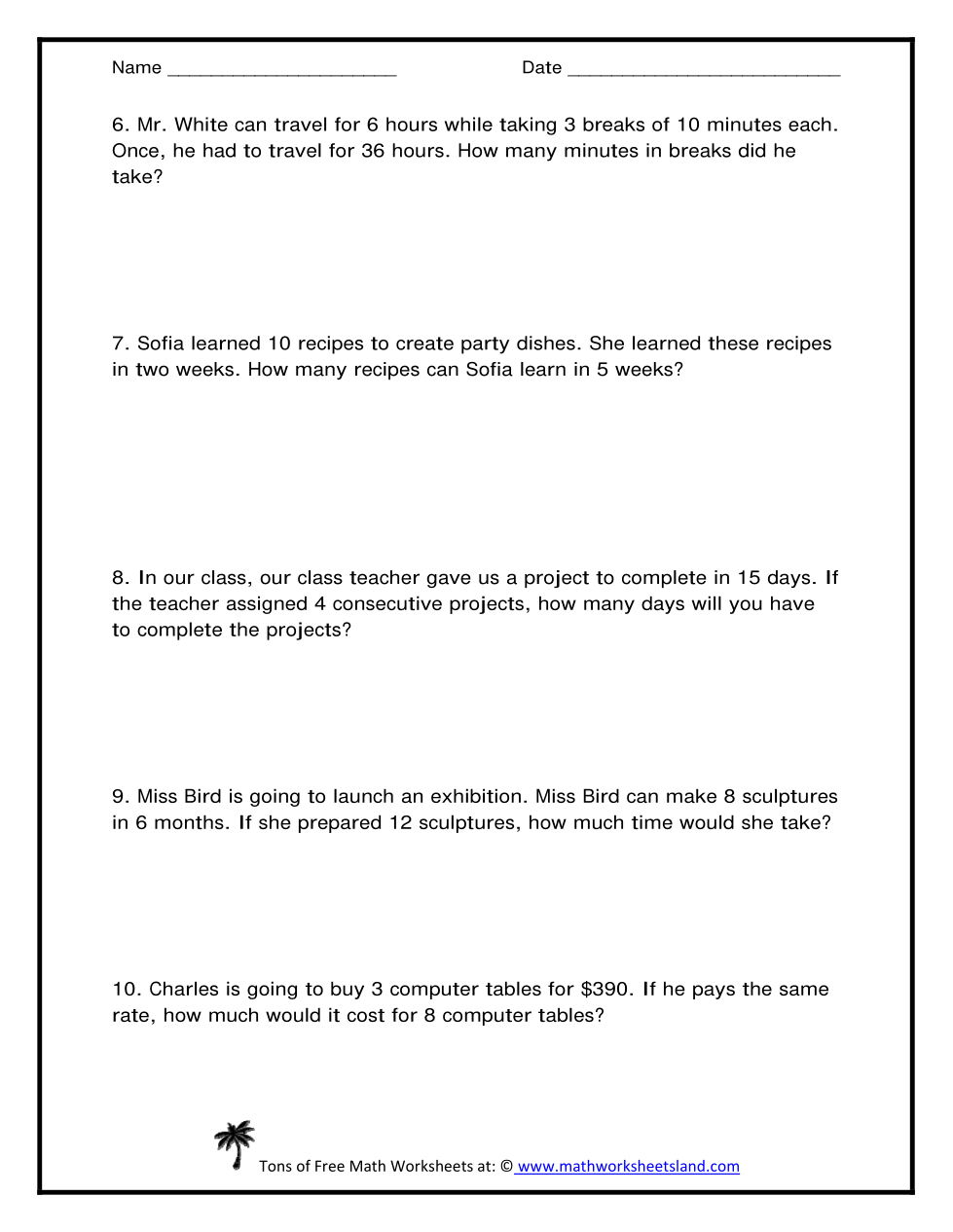 10. Charles is going to buy 3 computer tables for $390. If he pays the same rate, how much would it cost for 8 computer tables?