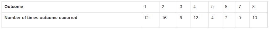 A computer generates 75 integers from 1 to 8 at random. The results are recorded in this table.