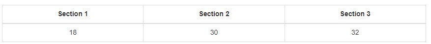 A spinner has three sections. This table shows the results of spinning the arrow on the spinner 80 times.