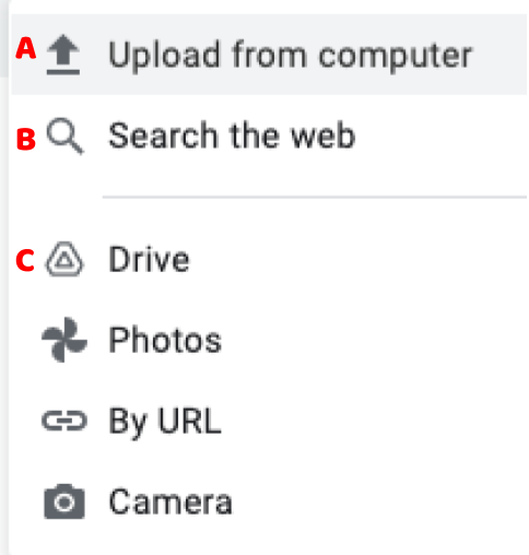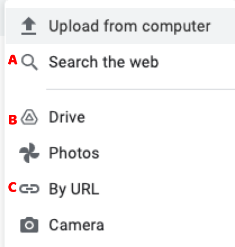 Carlos wants to insert a image in Google Drawing. Which option does he need to select if he already copied the image address?