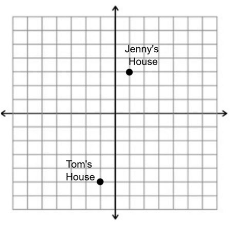 Use the following diagram for the next 2 questions. The locations of Tom's house and Jenny's house are located on the map below.