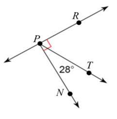 In the diagram below, m\angle{QPR} = (6x + 8)o and m\angle{SPT} = (7x - 14)o. Solve for x.