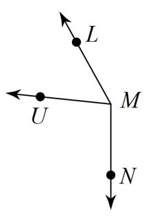 Use the diagram below for the next 3 questions. Use the given information to write an equation for x, then find the measures of \angle{NMU} and \angle{UML}.