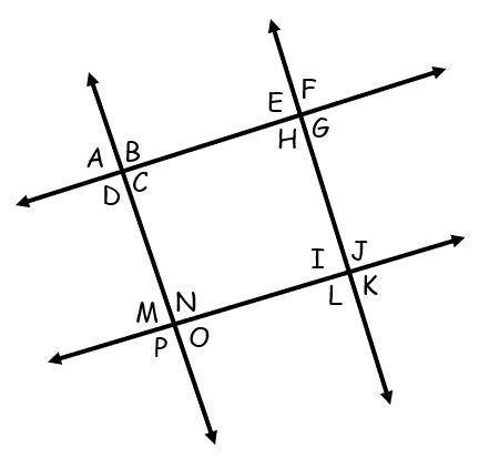 \angle{F} and \angle{}_______ are Alternate Exterior Angles