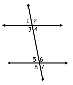If m\angle{8} = 54o, then m\angle{1} = _______