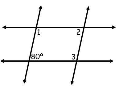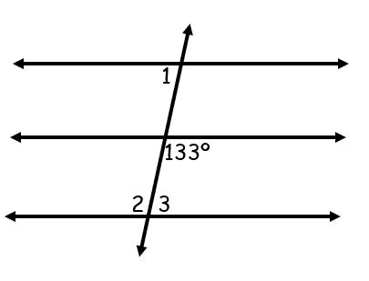 Using the diagram below, what is m\angle{1}, m\angle{2}, and m\angle{3}? Write your answer as #, #, #
