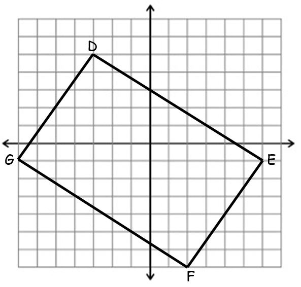 Use the following of quadrilateral DEFG to determine what type of quadrilateral it is. You will find the slopes of distances of all four sides. Slopes should be written as reduced fractions, and distances written as radicals (NO DECIMALS).