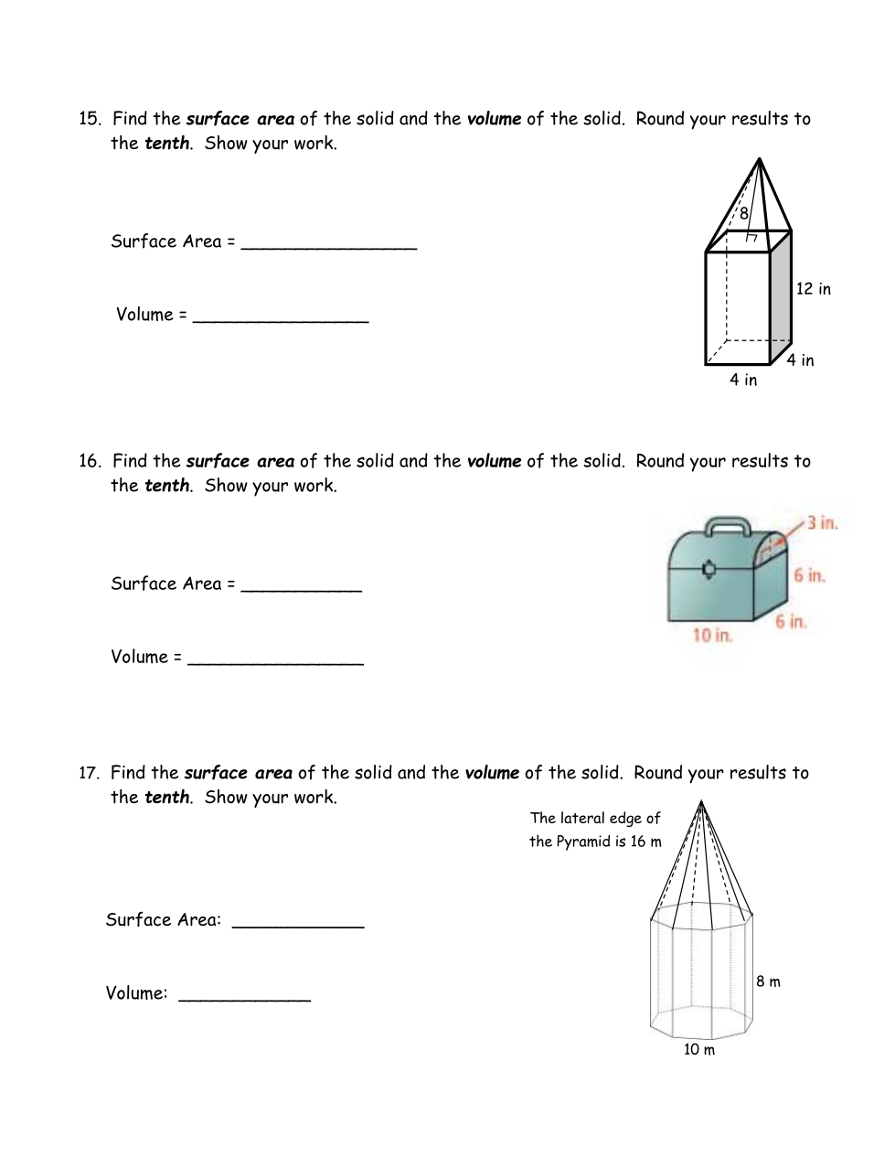 Find the SURFACE AREA.