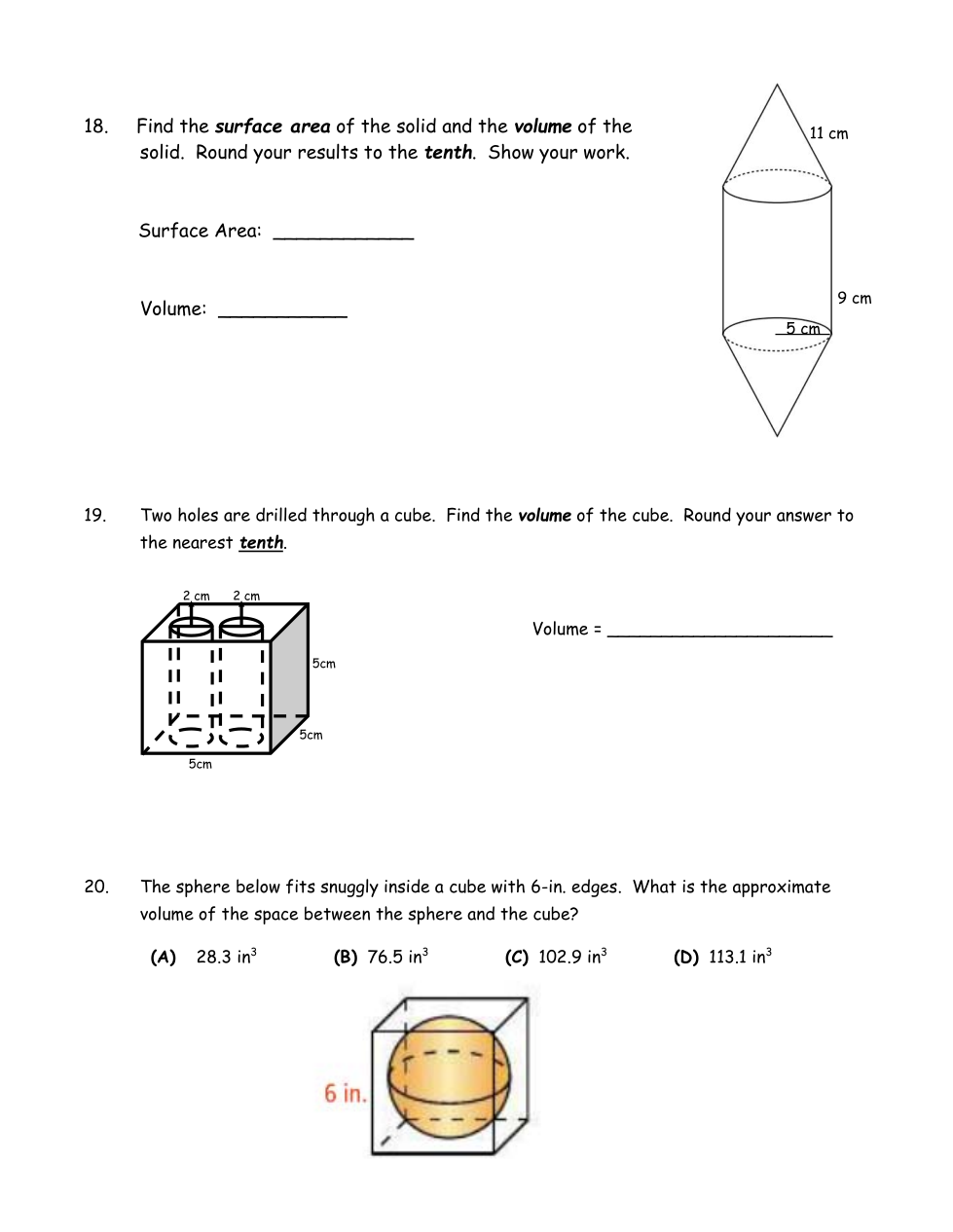 What is the VOLUME of the space between the sphere and the cube?