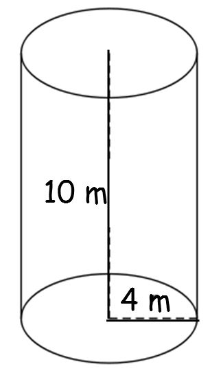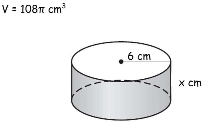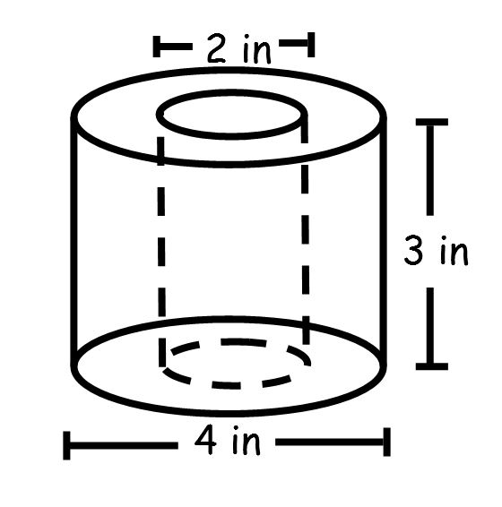 The figure shown is a cylindrical solid with a circular cylindrical hole drilled out of the center. Find the VOLUME of the solid.