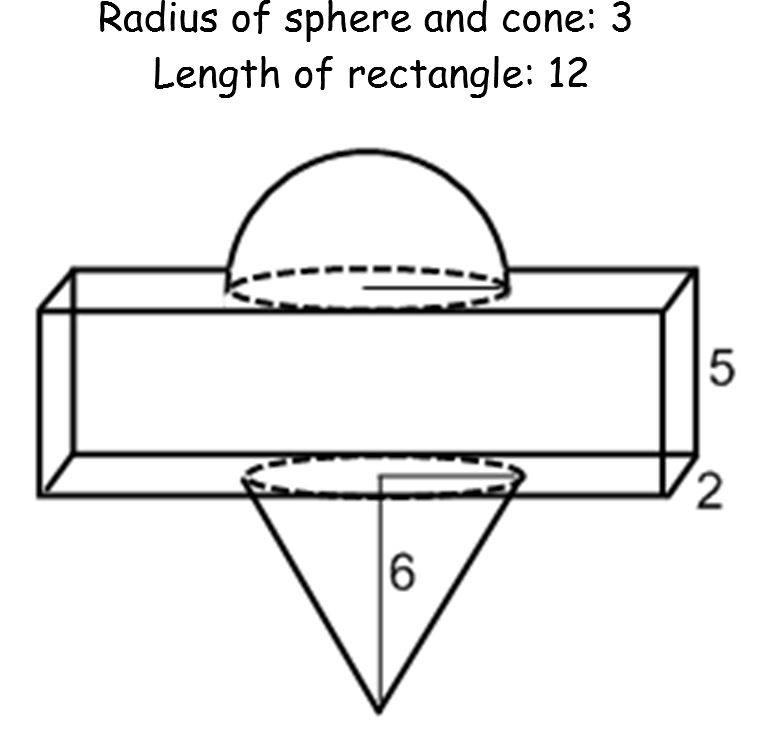 BONUS: The figure shown is a cylindrical solid with a circular cylindrical hole drilled out of the center. Find the VOLUME of the solid.