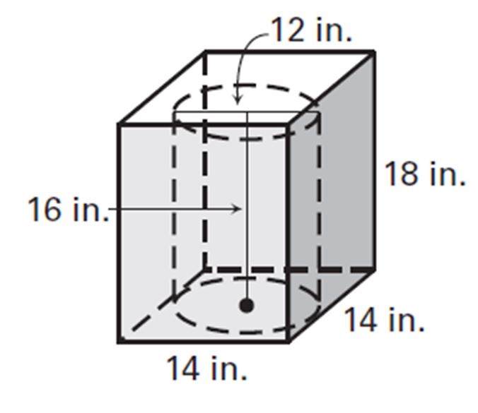 A cylindrical side table is packaged in the rectangular prism as shown. How much space is not taken up by the table inside the box?