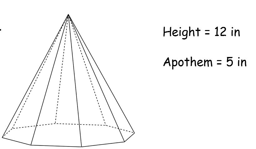 - A polyhedron made up of one polygon base and triangular sides that meet at one vertex