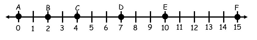 For the next 4 questions, use the number line below to find the ratio of the distances given.