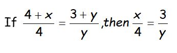 If x, y, z, and q are four different numbers, and the proportion \frac{x}{y}=\frac{z}{q} is true, which of the following is FALSE?