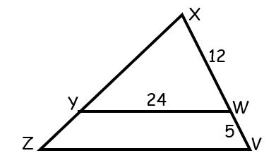In the diagram below, given that \frac{XW}{XV}=\frac{YW}{ZV}, find ZV.