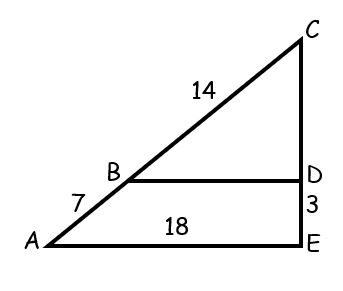 In the diagram below, given that \frac{CA}{CB}=\frac{AE}{BD}, find BD.