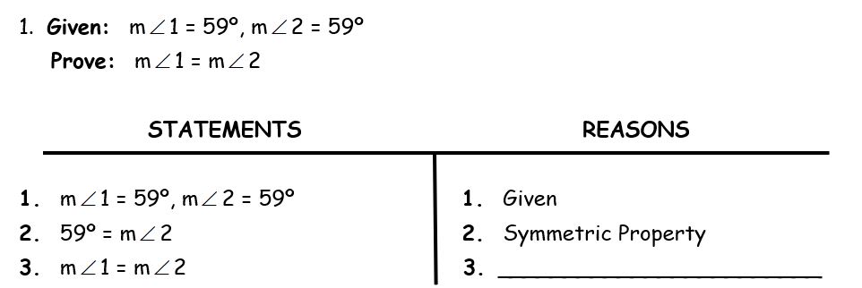 Transitive Property. If \angle{F} = \angle{J} and \angle{} ________ = \angle{} ________, then \angle{F} = \angle{L}