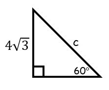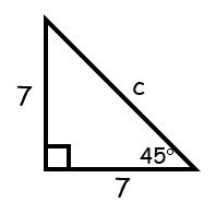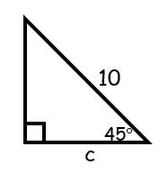 Solve for c in this special right triangle. Leave your answer in simplified radical form.