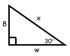 Solve for w in this special right triangle. Leave your answer in simplified radical form.