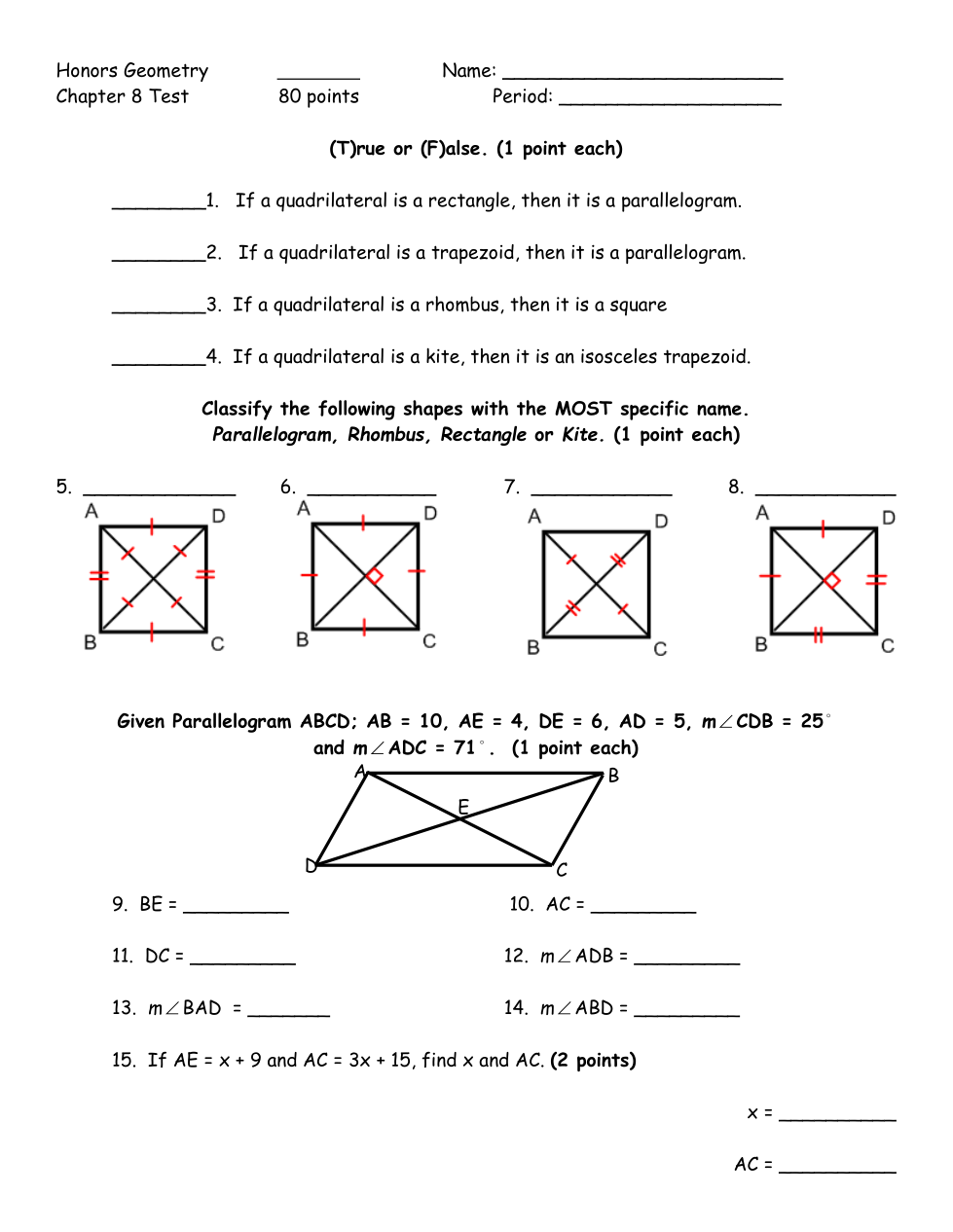 Honors Chapter 8 Test