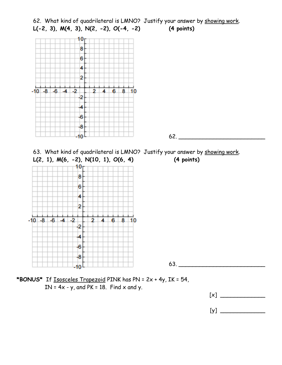 What kind of quadrilateral is LMNO? Justify your answer by showing your work.