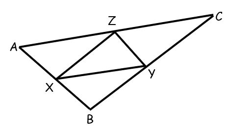 Triangle ABC has midpoints of X, Y, and Z.